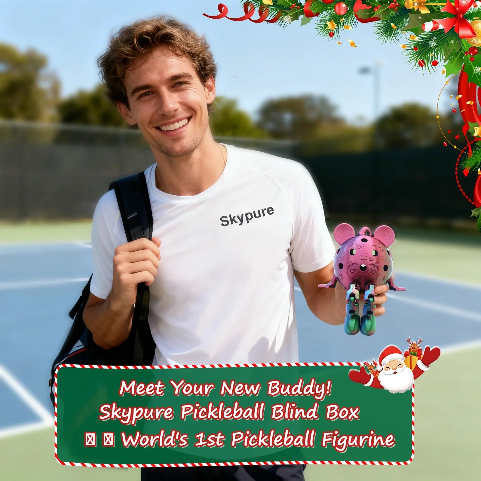 - 🎄【圣诞匹克球伙伴盲盒】用这款独家 Skypure 匹克球伙伴盲盒庆祝节日吧!每个神秘盲盒都包含一个节日匹克球角色和专业匹克球装备——无论是收藏家还是球员,都能找到心仪之物。